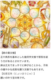 麻は丈夫でまっすぐに伸びることから、子供の健やかな成長を願う文様でもあります。