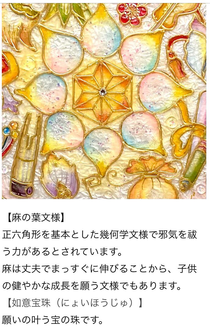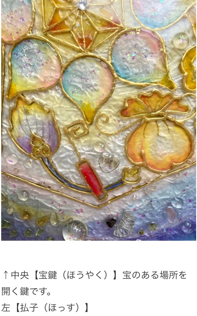 絵の中のそれぞれの宝尽くし文様をご紹介します。