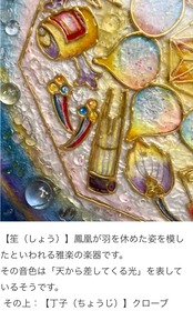 【笙(しょう)】鳳凰が羽を休めた姿を模したといわれる雅楽の楽器です。